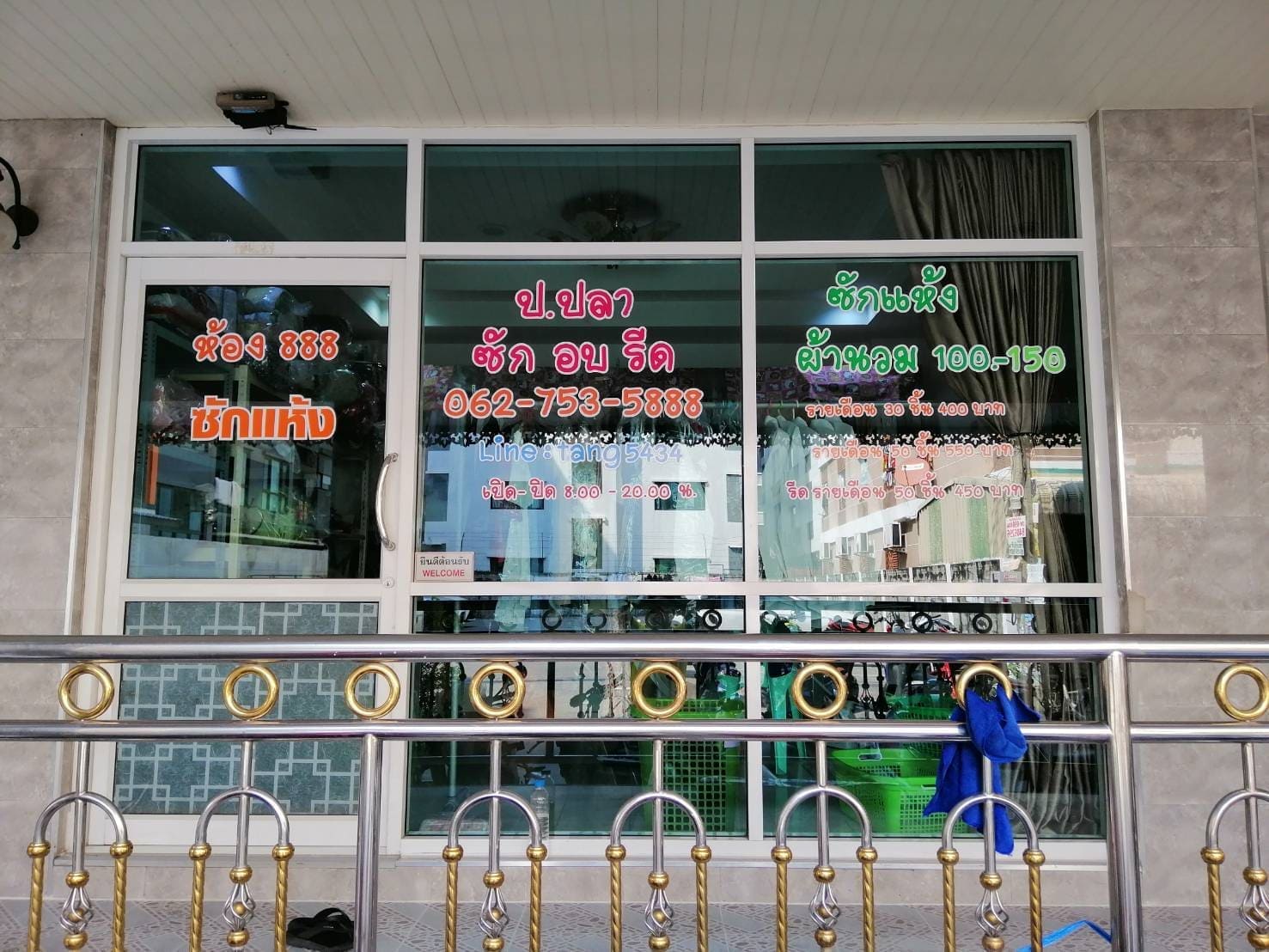 หลายร้านเลือกที่จะใช้ทั้งสติ๊กเกอร์ฝ้าด้านล่างเพื่อพรางสายตา และใช้ สติ๊กเกอร์โลโก้ติดกระจกหน้าร้าน แบบไดคัทไว้ตรงกลางเพื่อเน้นชื่อร้าน ซึ่งเป็นการดึงจุดเด่นของแต่ละวัสดุมาใช้ร่วมกันได้อย่างลงตัว