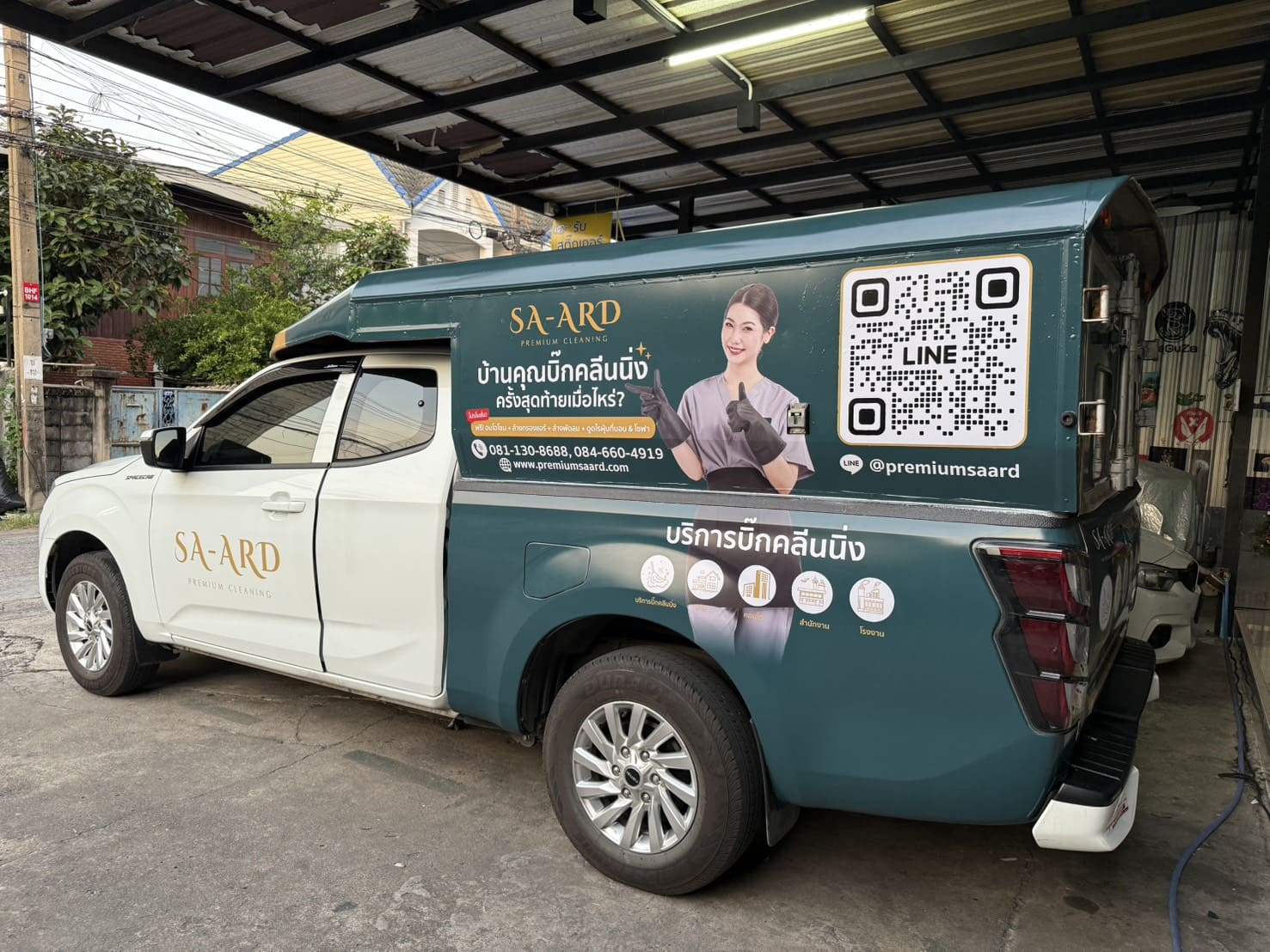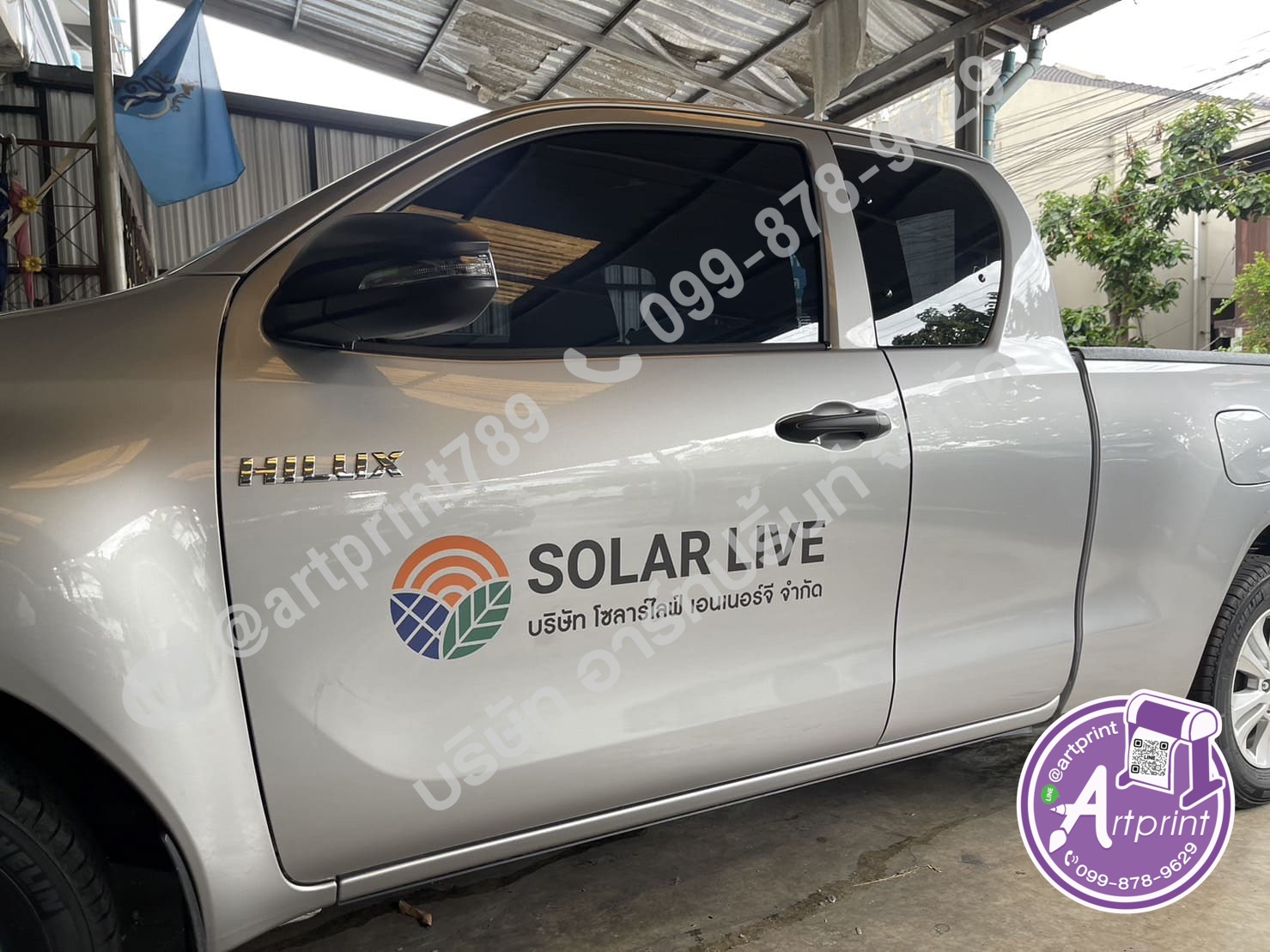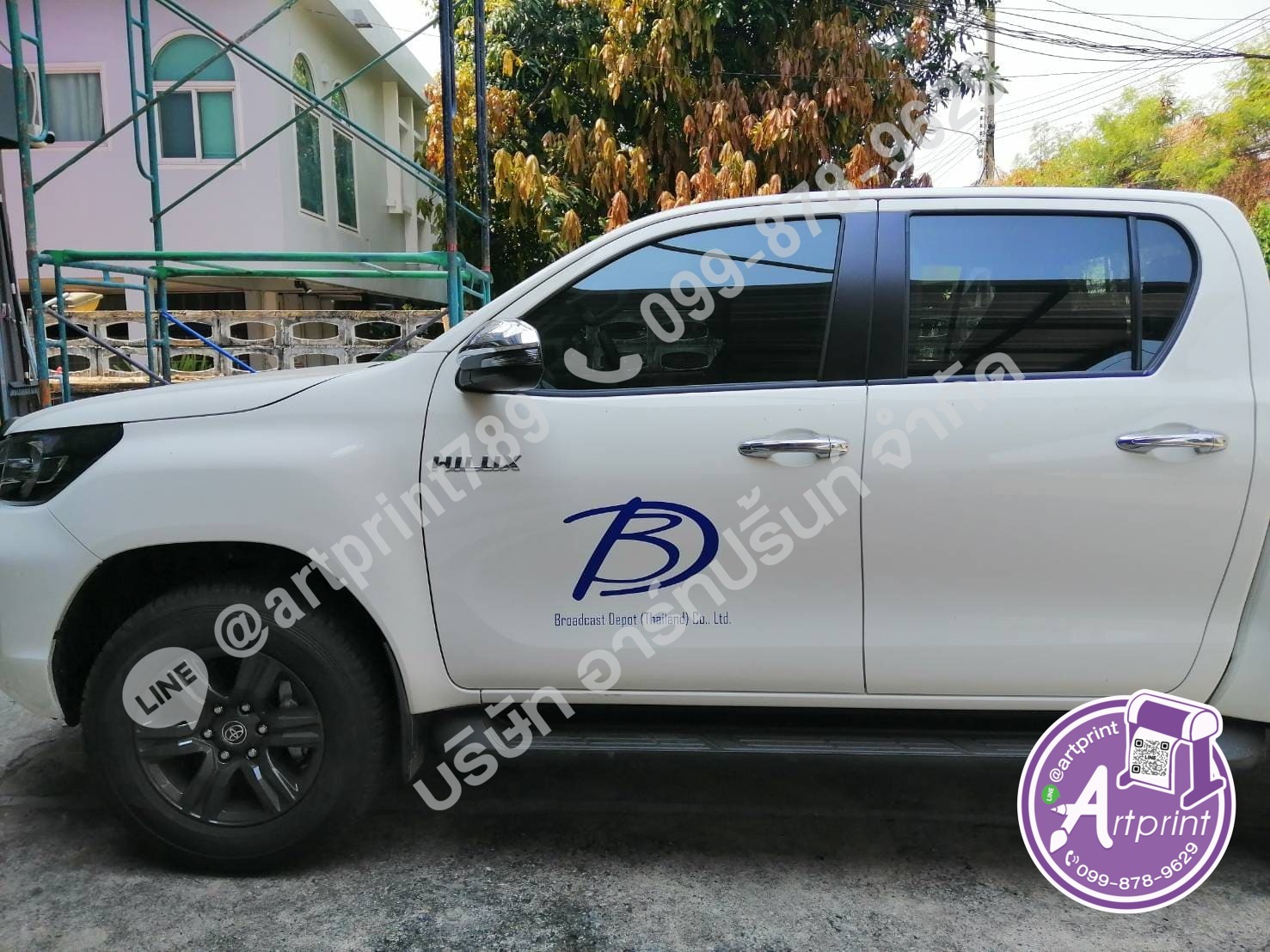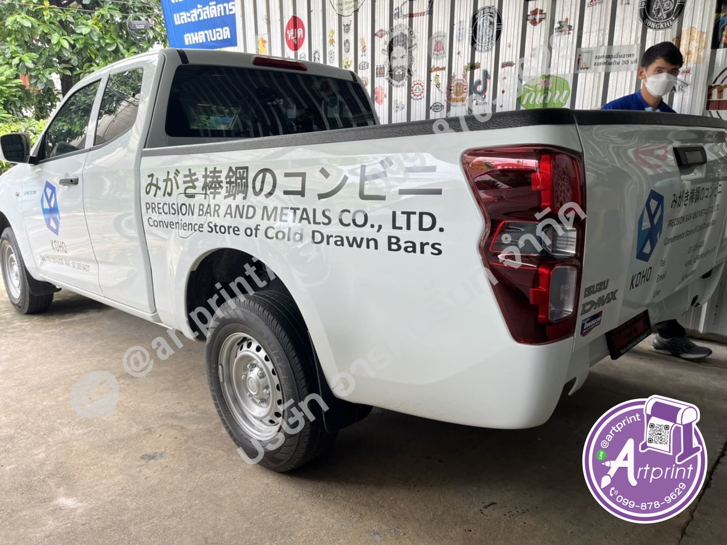 - สติ๊กเกอร์ไดคัทติดข้างประตูรถกระบะ : สำหรับผู้ที่ต้องการความเรียบง่าย เน้นเฉพาะโลโก้และชื่อร้าน