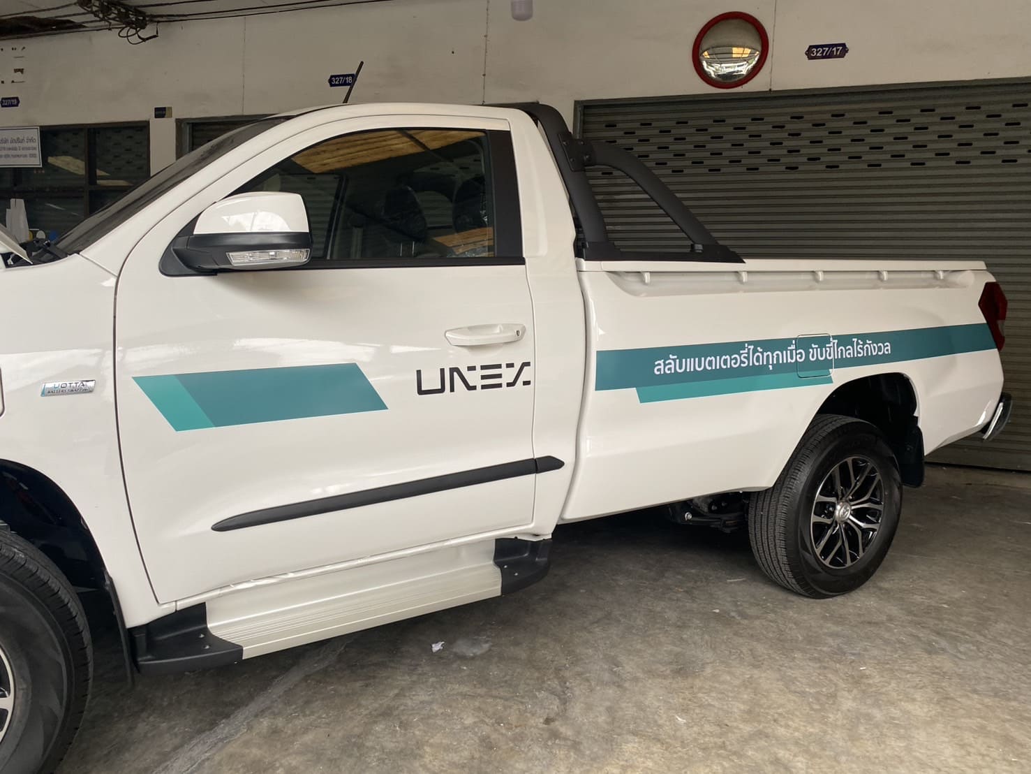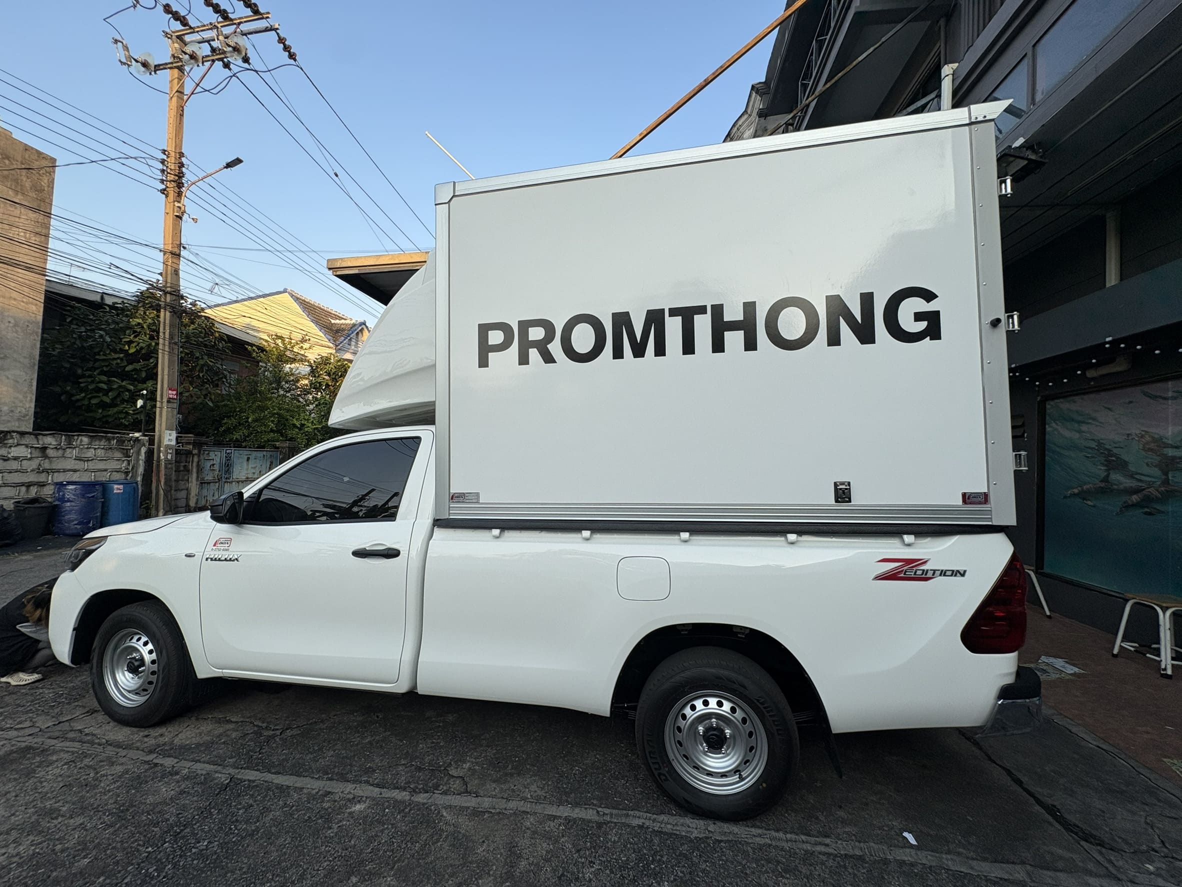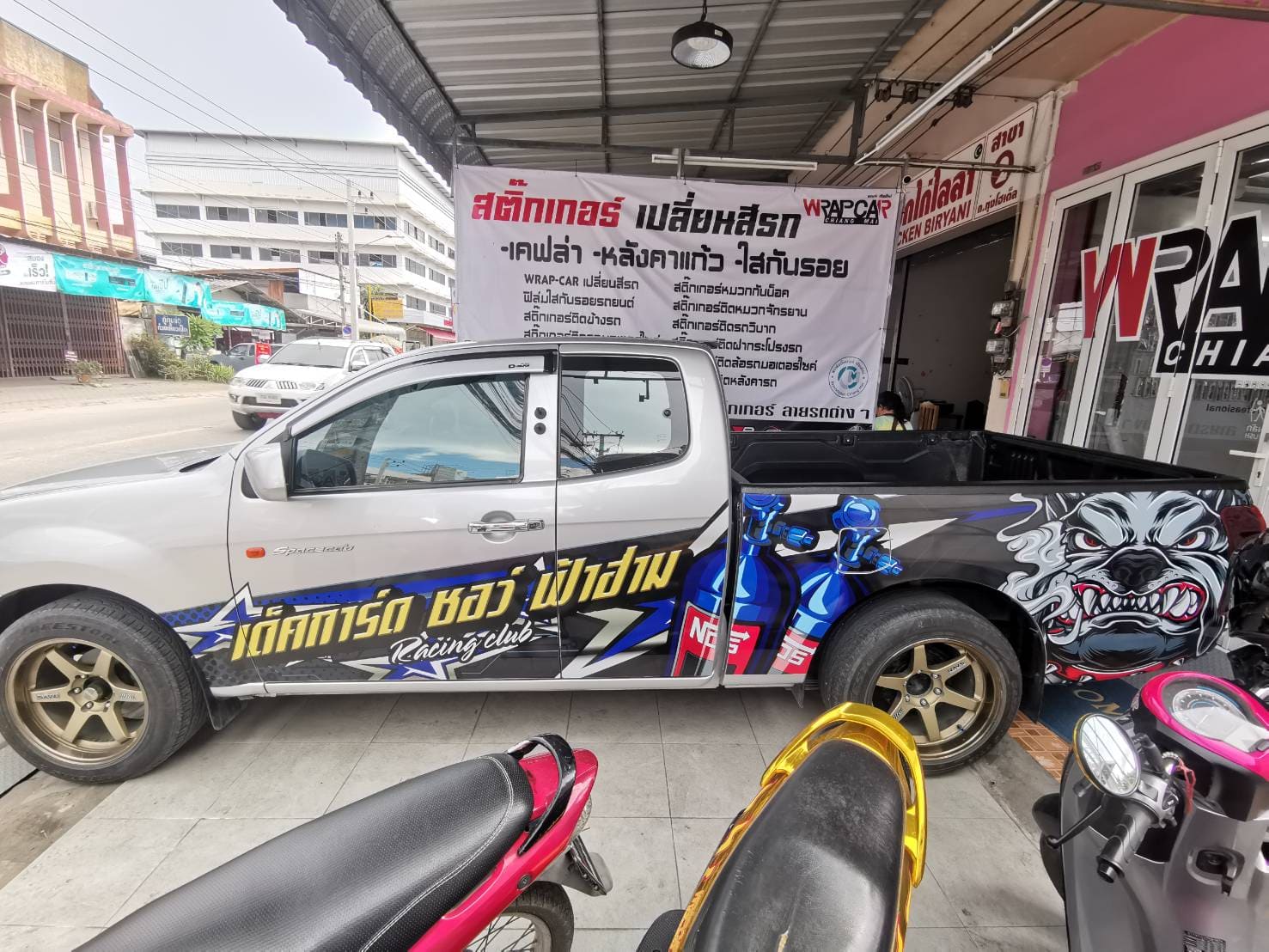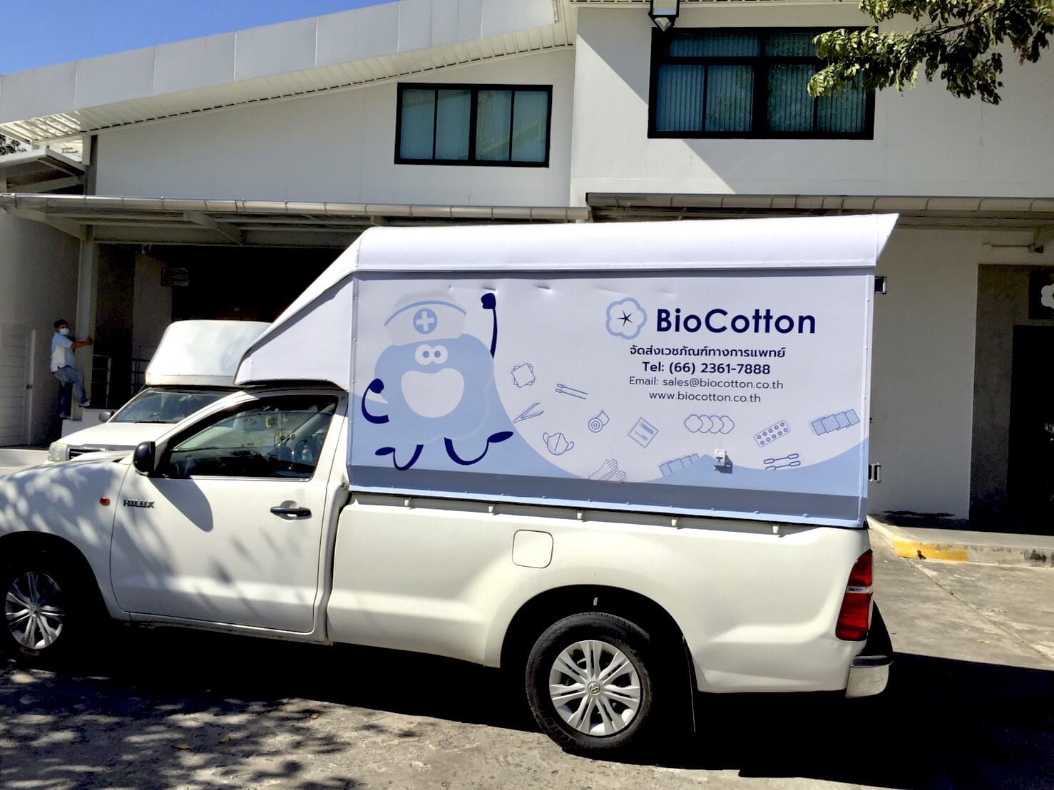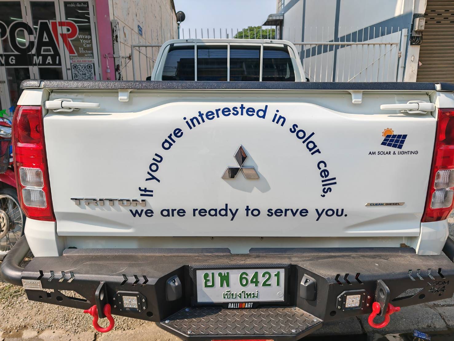 - สติ๊กเกอร์ไดคัทติดข้างประตูรถกระบะ : สำหรับผู้ที่ต้องการความเรียบง่าย เน้นเฉพาะโลโก้และชื่อร้าน