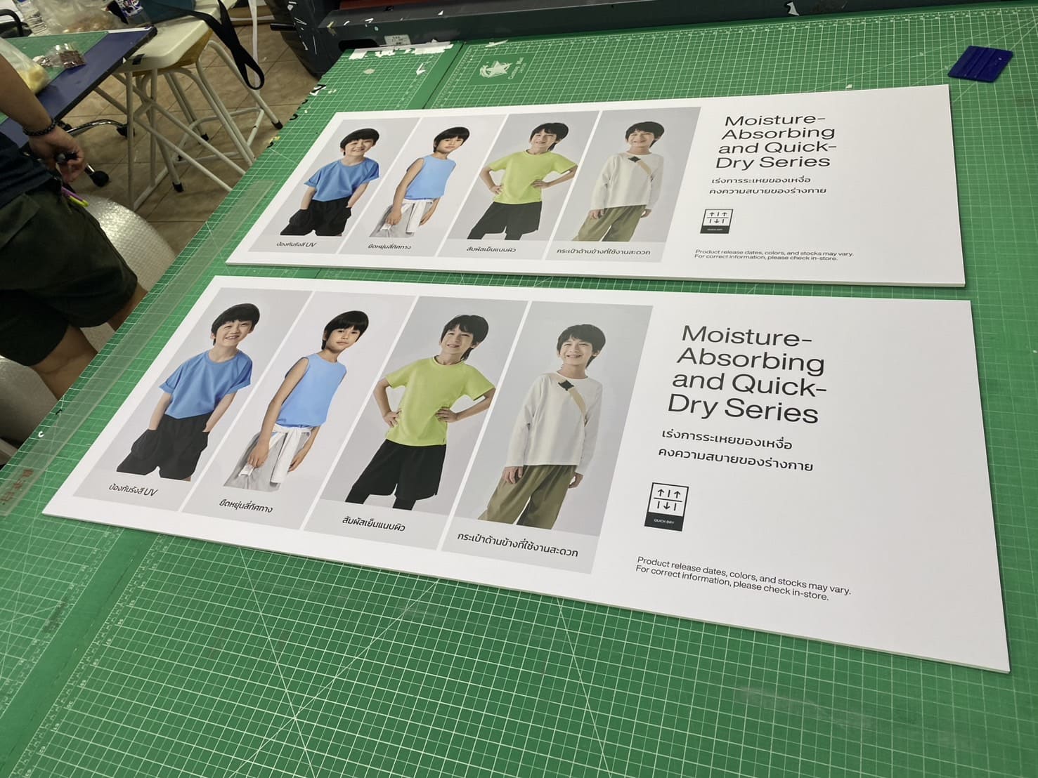 อีกกรณี คือร้านเสื้อผ้าที่ออกคอลเลกชั่นใหม่ทุกเดือน จะพิมพ์บอร์ดสติ๊กเกอร์ที่บ่งบอกคอลเลกชั่นล่าสุด ไปติดตามจุดขายเชิงกลยุทธ์ในห้างต่าง ๆ ควบคู่กับการโฆษณาออนไลน์ ส่งผลให้ลูกค้าเห็นแบรนด์ทั้งในโลกโซเชียลและสถานที่จริง เกิดการตัดสินใจซื้อได้ไวขึ้น