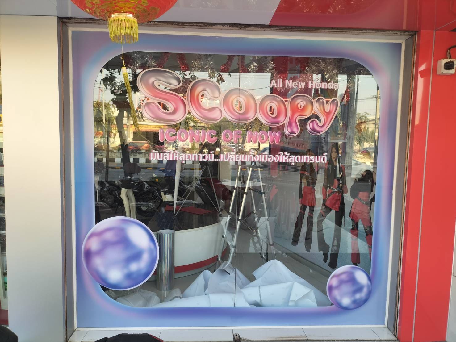 หนึ่งในไอเดียยอดฮิตคือการใช้ ป้ายสติ๊กเกอร์หน้าร้านแบบซีทรู ที่สามารถพิมพ์ลวดลายหรือข้อความลงไปได้ โดยที่ภายในร้านยังสามารถมองออกมายังด้านนอกได้อย่างชัดเจน เหมาะกับร้านที่ไม่ต้องการบังสายตาและยังรักษาบรรยากาศปลอดโปร่ง ลูกค้าที่เดินผ่านไปมาจะเห็นลวดลายหรือข้อความโฆษณาจากภายนอก แต่เมื่อเข้าไปในร้านก็ยังคงมองเห็นแสงธรรมชาติ